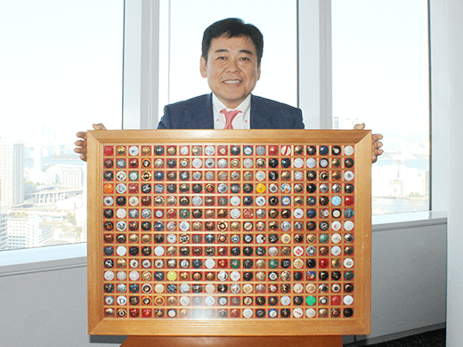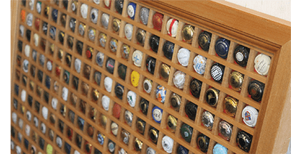 ―取材を終えて…竹藤会長のコレクションのひとつ、シャンパンの王冠(ミュズレ)を見せていただきました。