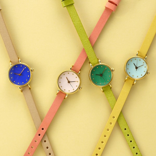 トップに合わせて、時計もコーディネートしてみましょう。こちらの時計はベルトと時計の画面の色が選べます。私がパーソナルカラー・スプリングさん向けにセレクトしてみました。参考にしてみて下さいね。