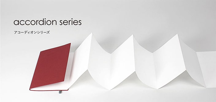 「accordionシリーズ」は、たたんでも、広げても、様々な記録を俯瞰できるじゃばら状に開くノートと、一枚でも何枚で必要な枚数で切って使うことができるじゃばら状のメモのシリーズです。また、ページがつながっていることで思考を止めることなく考えを書き続けることができ、時間の流れや思考のプロセスなど全体を見渡すことができのが特徴です。
