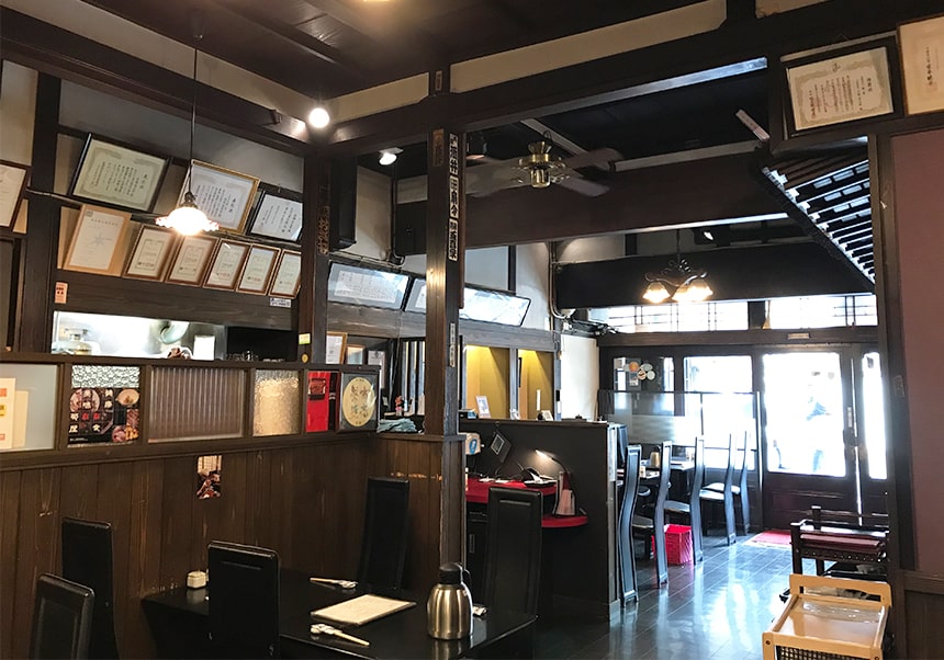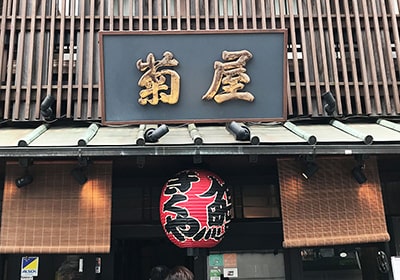 お店には10:30頃入ったので、まだお客さんも少なく1階奥の席に通されました。宮家の紋を使うことを許された歴史のある菊屋の店内は、昔ながらの造りで落ち着いた雰囲気。さっそく数量限定の「国産鰻重」を注文。菊屋では、産地証明書付きのうなぎを日々仕入れていて、毎日店頭に産地証明書を提示しているので安心感があります。