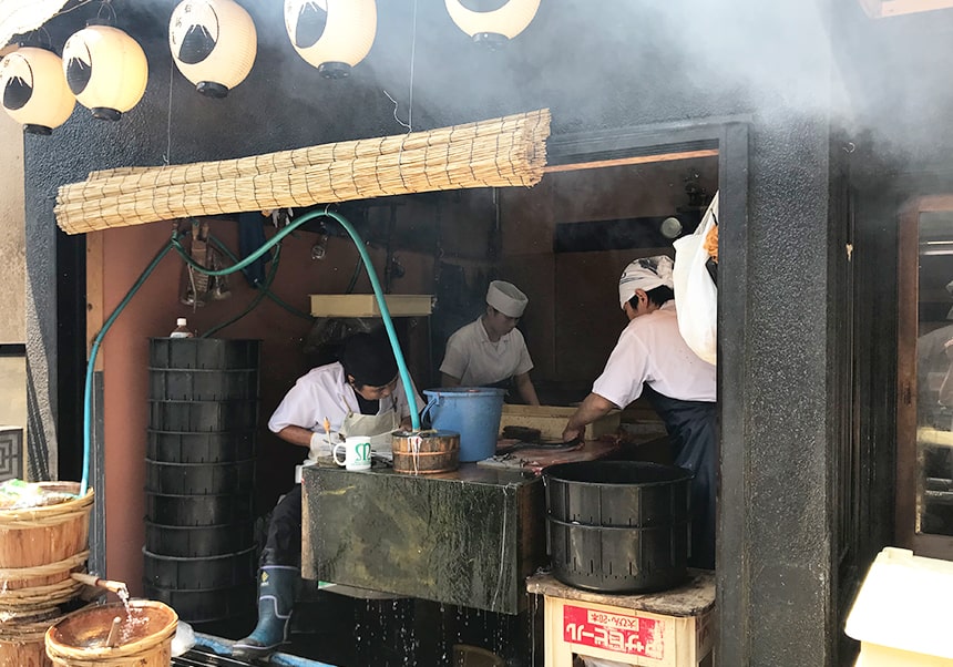 そして、成田詣での旅人を迎え入れる街として、旅館がもっとも賑わいを見せていた江戸時代を彷彿とさせるのが、「仲町・幸町界隈」です。昔ながらの街並みが残るこの参道は、店頭でうなぎをさばく光景が見れるなど、多くの参拝客が行き交う活気にあふれたエリアです。