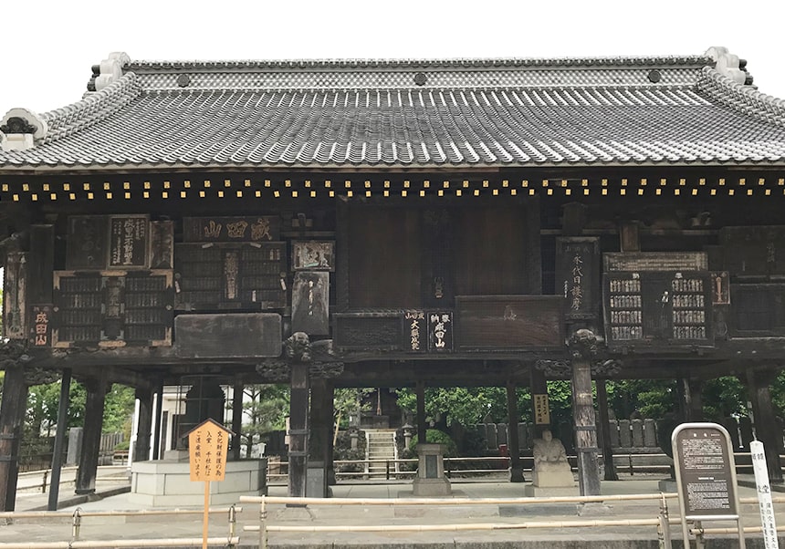 成田山新勝寺が現代に至るまで人気になった要因として、江戸で人気を博した歌舞伎役者 初代市川團十郎のこんな話があります。初代團十郎は子宝に恵まれず、父祖以来信仰している成田山で祈願したところ、待望の長男を授かりました。初代團十郎は大変喜んで、成田不動尊にまつわる「成田山分身不動」という歌舞伎を上演したところ、芝居は大当たり。これを機に「成田屋」の屋号を使うようになったそうです。團十郎の活躍により、成田不動は多くの人々に知れ渡り、江戸庶民の間で成田山参詣が広まったと言われています。