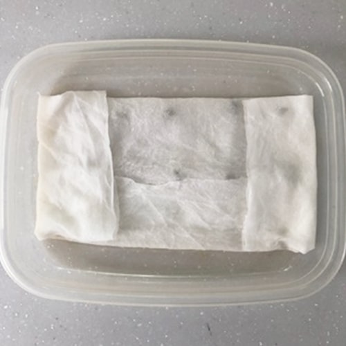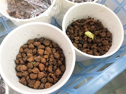 まずは、種を湿ったキッチンペーパーに一晩包んで、発芽しやすいように柔らかくします。