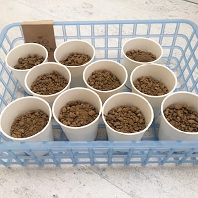 今回は、LFCコンポスト※1もセットで購入したので、そちらのガーデニング用土を使用します。"芽が出るまでは過保護に育てる"という説明を聞き、朝晩水の状態を確認し、夜は家の中へ。