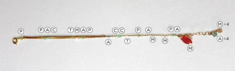 P:ペリドット C:クリソプレーズ A:アパタイト T:淡水パールホワイト M:オレンジムーンストーン