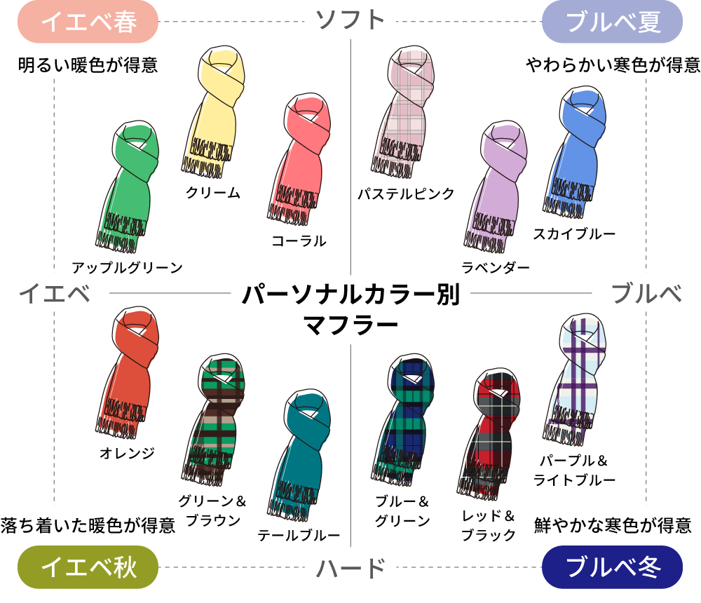まずはマフラーからパーソナルカラーを楽しんでみてください。