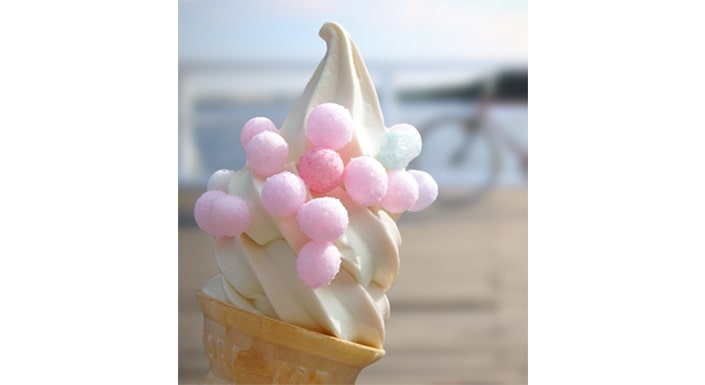 直径1cmほどの丸い形で、ピンク、水色、白、緑、紫、オレンジなどカラフルな色合いのお菓子。とても軽くて、口の中に入れると「しゅわ」っと一瞬で溶けてしまいます。