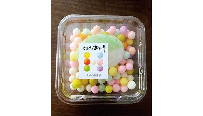 この「おいり」は「幸せのお菓子」と呼ばれています。それは、「おいり」が香川の西讃岐地方の嫁入り道具のひとつで、婚礼の際の定番のお菓子だからです。