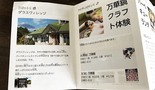 AM10:30になり万華鏡づくりのため、クラフトの里「ダラスヴィレッジ」さんへ。こちらでは、手作り体験が楽しめる工房と、バーベキューレストランが併設された施設。季節限定の体験もあるようなので、ホームページでチェックしてみてください。
