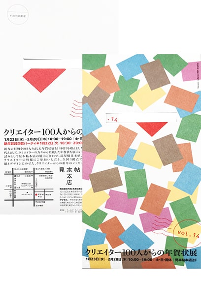 新春の恒例企画となりました年賀状展も14回目を迎えました。今年も新年のご挨拶に代えまして、 クリエイターの方々から頂戴した年賀状を展示いたします。今年は初めての試みとして、淀屋橋見本帖、福岡見本帖でも地域のクリエイターの皆様にご参加いただき、全国3拠点で同時開催いたします。紙とデザインにのせた、クリエイターからの新年のメッセージをお楽しみください。